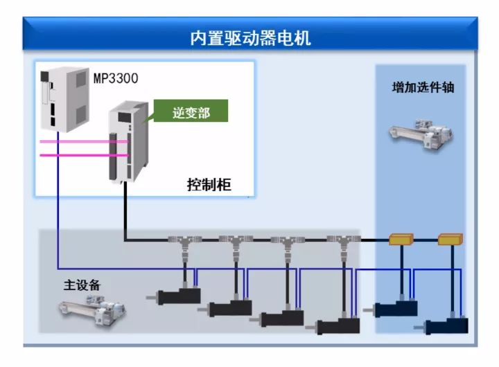 注:逆變器最多可連接8臺驅(qū)動器內(nèi)置型伺服電機。(因電纜長度,逆變器容量而不同)