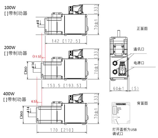 輸入電源:AC200V 輸出電源:DC270V 再生電阻外置 |