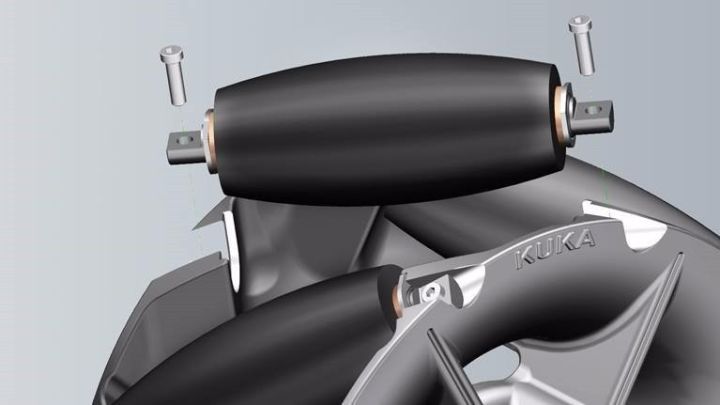 ?硬件組件:車(chē)身、KUKA 馬達(dá)、實(shí)心軸、連接車(chē)輪系統(tǒng)的變速器