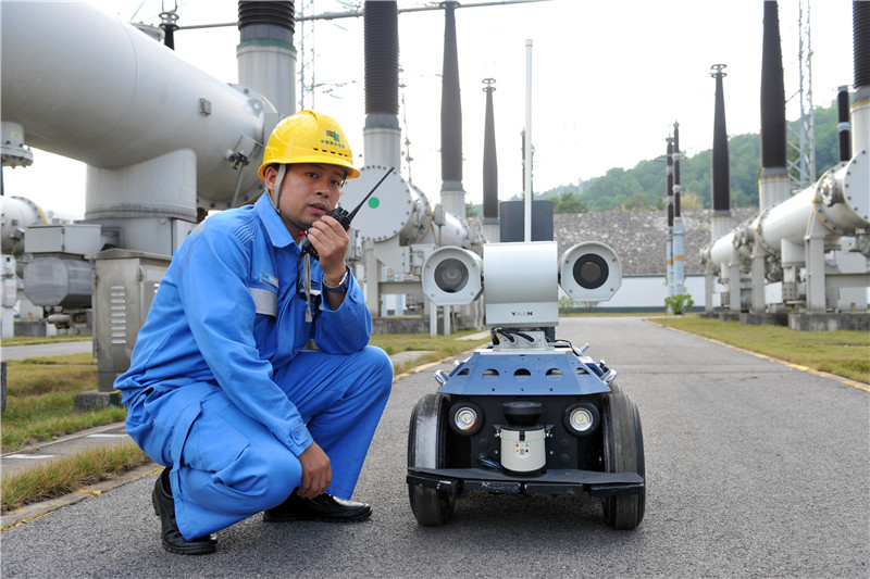 500千伏桂山站巡視機(jī)器人。