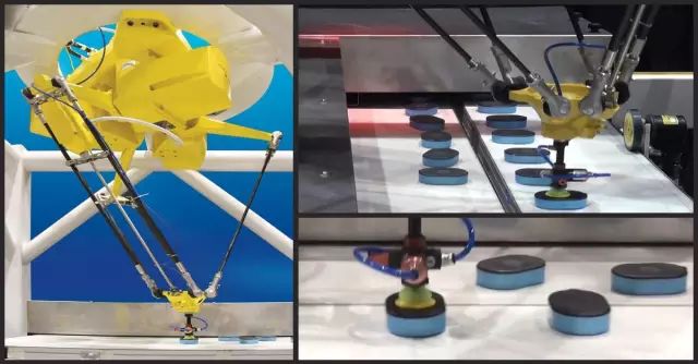 拳頭機(jī)器人M-2iA進(jìn)行高速分揀整列作業(yè),機(jī)器人采用視覺(jué)跟蹤技術(shù)