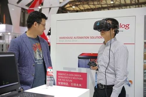 瑞仕格的展臺(tái)以豐富多樣的動(dòng)態(tài)倉儲(chǔ)系統(tǒng)、炫酷的機(jī)器人揀選方案與高科技未來感的VR & AR虛擬體驗(yàn)區(qū)吸引眾多觀眾的圍觀。