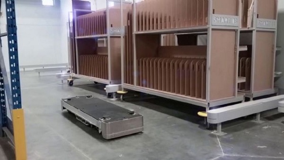 圖為Muskoka工廠內(nèi)的無人搬運(yùn)車。