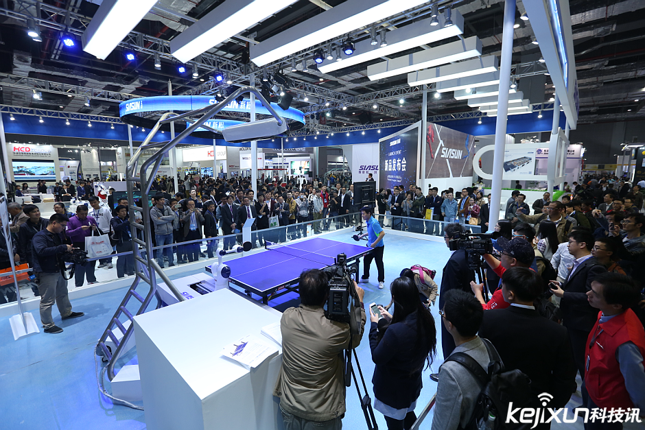 2017年11月7日,第十九屆中國國際工業(yè)博覽會如期在上海國家會展中心盛大開幕。作為國內(nèi)機器人行業(yè)的領頭企業(yè),新松攜協(xié)作型機器人系列新品火爆登陸中國館,帶來中國智造智慧!在新松展位,一場別開生面的龐伯特乒乓球機器人新品發(fā)布會吸引了成批觀眾駐足觀看。
