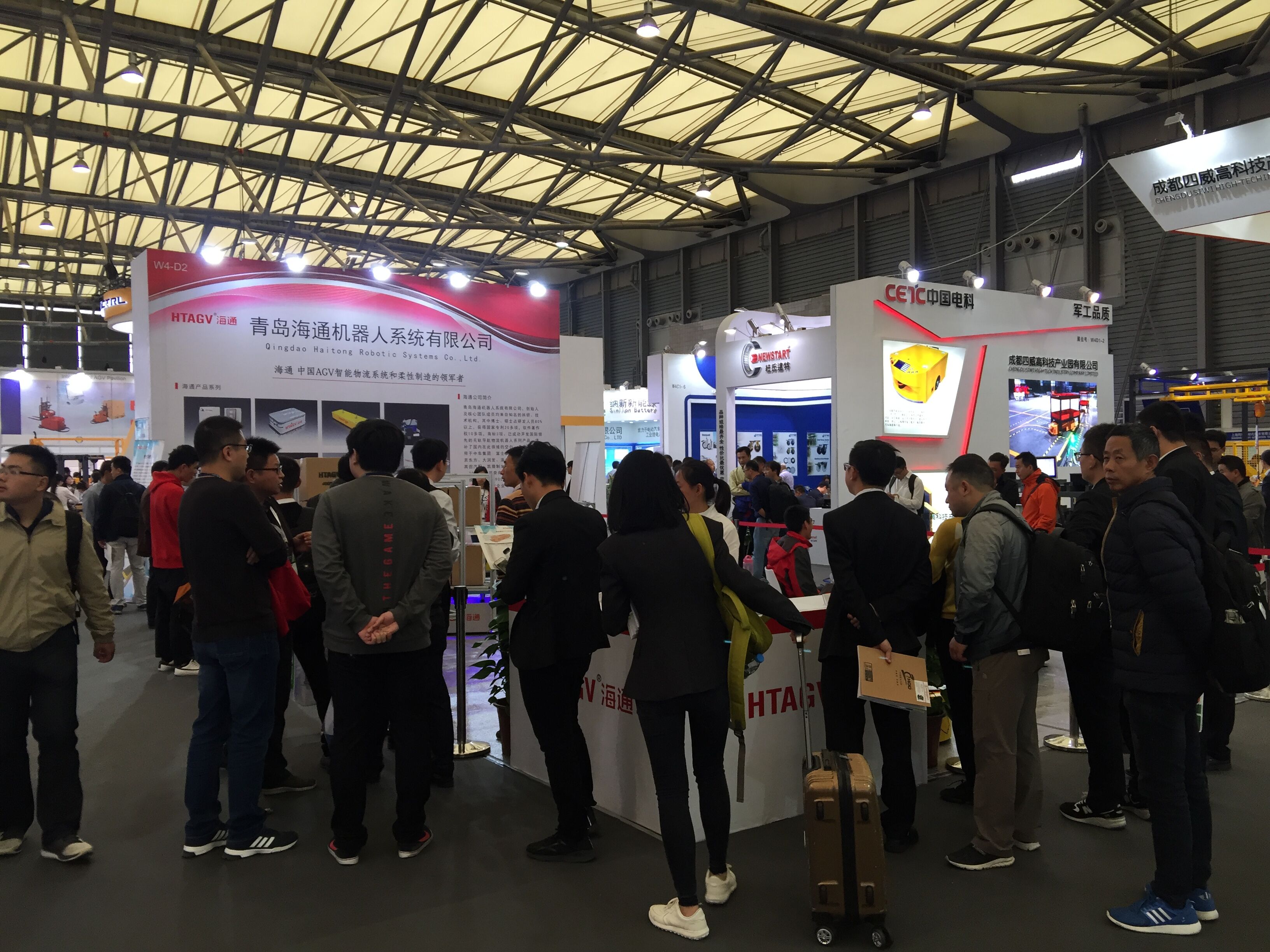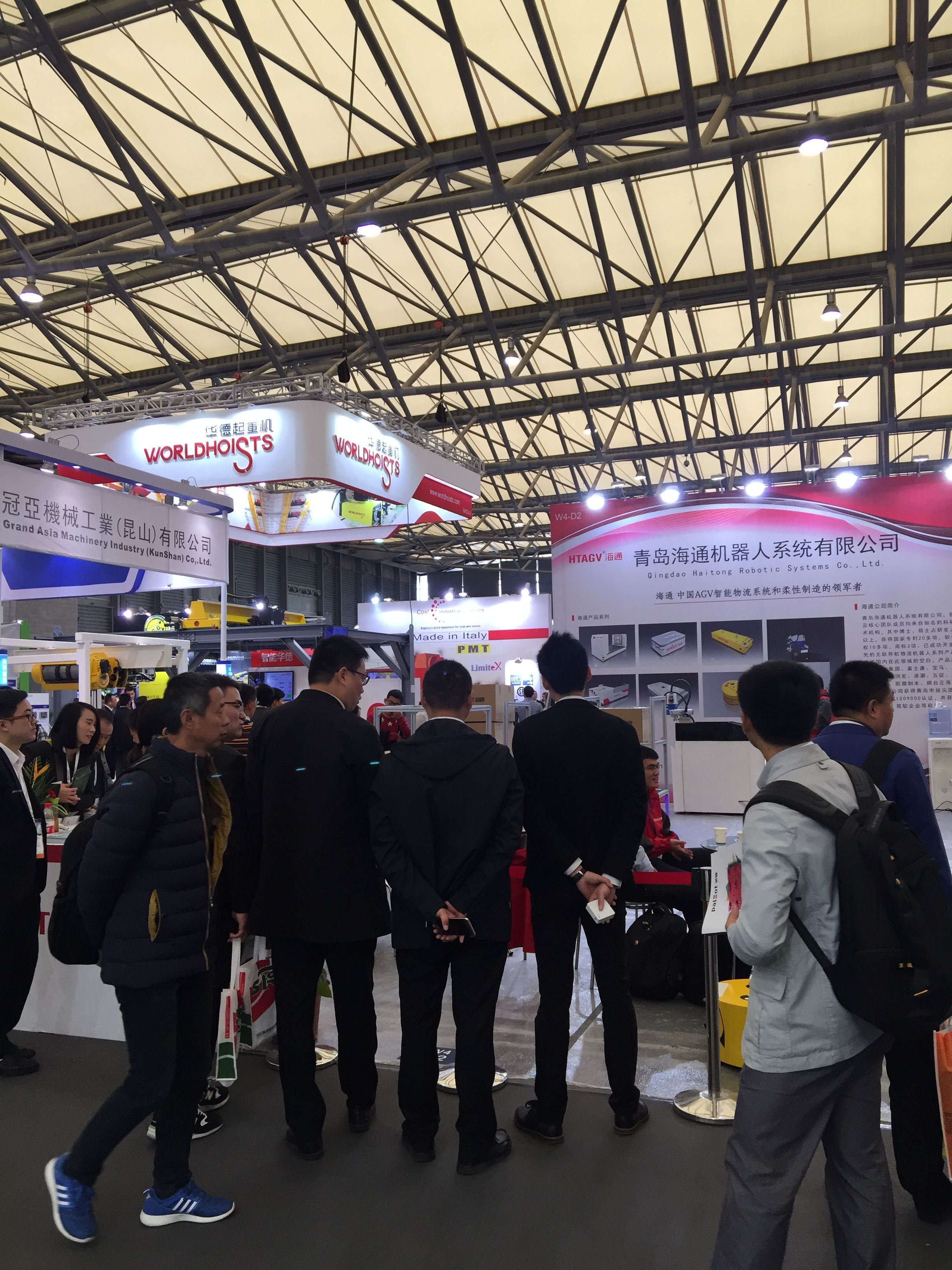 青島海通機(jī)器人位于W4館D2展位,攜無(wú)軌跡導(dǎo)航系列——協(xié)同機(jī)器人、慣導(dǎo)視覺(jué)混合導(dǎo)航iAGV和倉(cāng)儲(chǔ)型iAGV參展。期間觀眾絡(luò)繹不絕,如火如荼。
