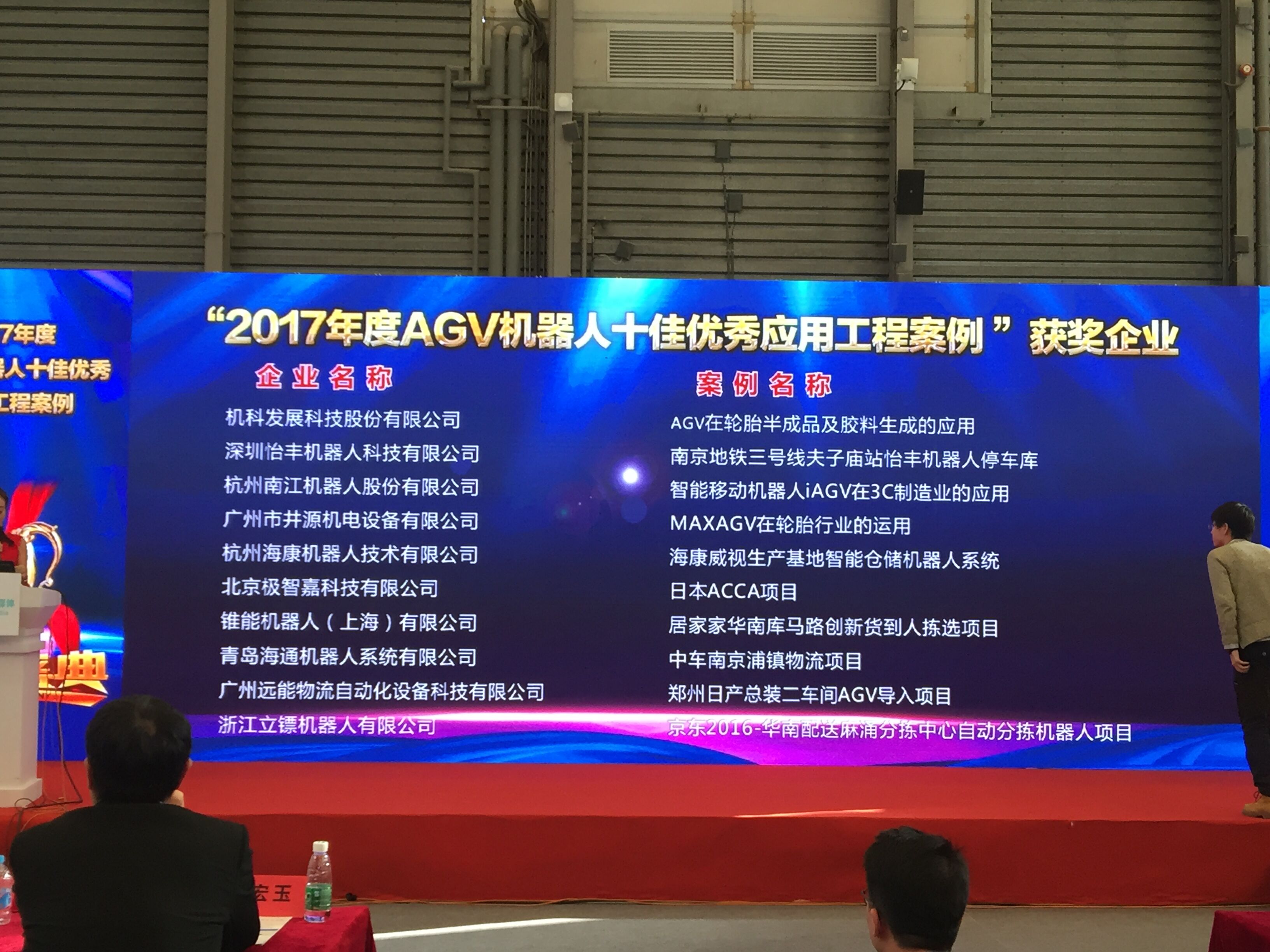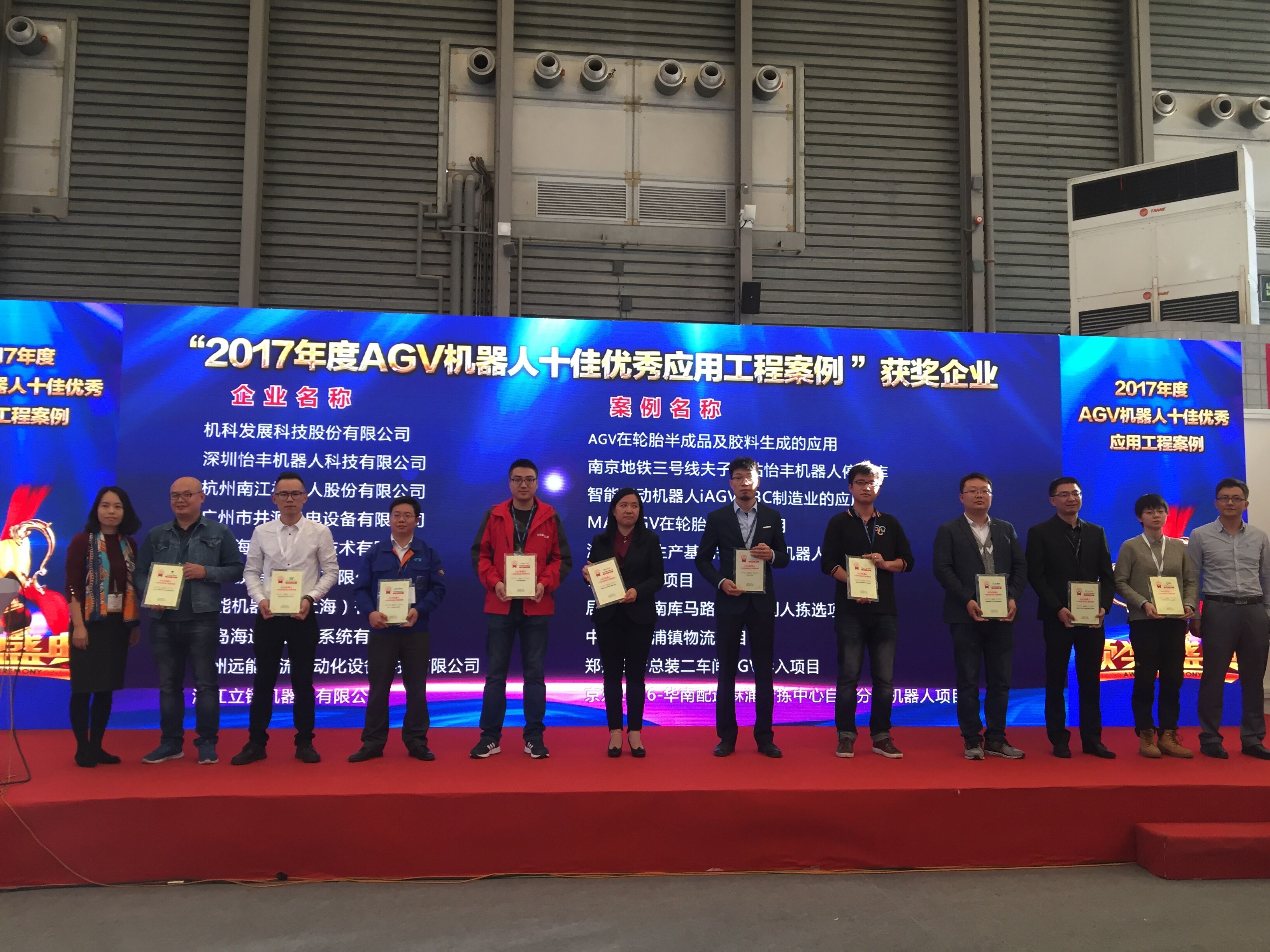 同時(shí),“2017年度AGV機(jī)器人十佳優(yōu)秀應(yīng)用工程案例”頒獎(jiǎng)盛典在展會(huì)期間進(jìn)行,青島海通機(jī)器人獲此殊榮。
