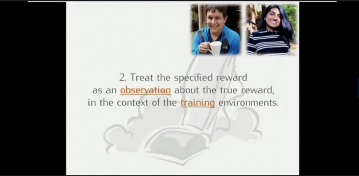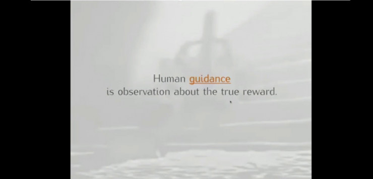 通過以上例子,說明需要在訓(xùn)練環(huán)境的背景下對(duì)特定的獎(jiǎng)勵(lì)進(jìn)行觀察找到真正的獎(jiǎng)勵(lì),而在執(zhí)行中人類的指導(dǎo)則是找到真正獎(jiǎng)勵(lì)的關(guān)鍵(如迪士尼動(dòng)畫片中,米奇讓掃把停止打水)。