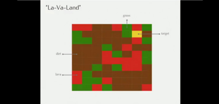 另一個(gè)包含草地、灰塵、熔巖和最終目標(biāo)的導(dǎo)航場(chǎng)景的例子。