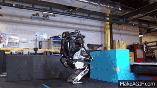 當(dāng)然Atlas目前并不完美,Boston Dynamics似乎也特別了解觀眾們期待看到機(jī)器人失敗出糗的小心思。Atlas與人類最相似的瞬間,可能就是在視頻最后的花絮里,后空翻沒有完美著陸的它翻滾到一邊、雙腳朝天的可憐樣子....... 居然顯得十分呆萌。