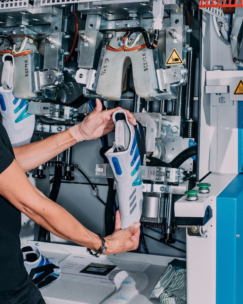 圖自阿迪達(dá)斯 踏入工廠內(nèi),空間以白色為主調(diào),開闊明亮。里面的工人不多,機(jī)器也不多,兩者的合作卻非常緊密。