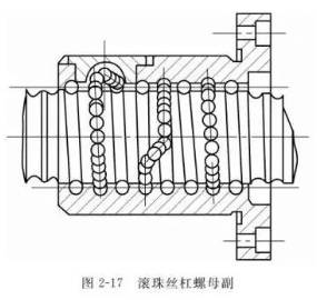如圖2-17所示滾珠絲杠螺母里的滾珠經(jīng)過研磨的導(dǎo)槽循環(huán)往復(fù)傳遞運動與動力。滾 珠絲杠的傳動效率可以達(dá)到90%