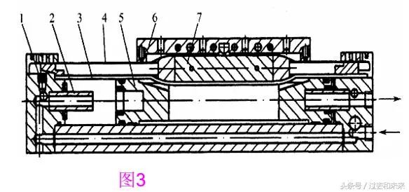 當(dāng)從無桿腔輸入壓縮空氣時,有桿腔排氣,氣缸兩腔的壓力差作用在活塞上所形成的力克服阻力負載推動活塞運動,使活塞桿伸出;當(dāng)有桿腔進氣,無桿腔排氣時,使活塞桿縮回。若有桿腔和無桿腔交替進氣和排氣,活塞實現(xiàn)往復(fù)直線運動。