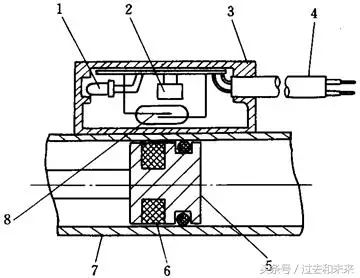 1-動作指示燈,2-保護電路,3-開關(guān)外殼,4-導(dǎo)線,5-活塞,6-磁環(huán),7-缸筒,8-舌簧開關(guān)