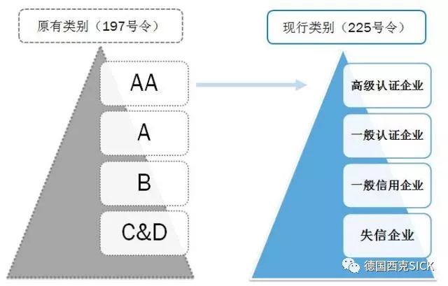 - 2015年及2016年為過渡期。自中國實(shí)行AEO制度起,原有的AA類、A類、B類和C/D類企業(yè)過渡到高級(jí)認(rèn)證企業(yè),一般認(rèn)證企業(yè)、一般信用企業(yè)和失信企業(yè),并且每3年將會(huì)重新認(rèn)證一次。