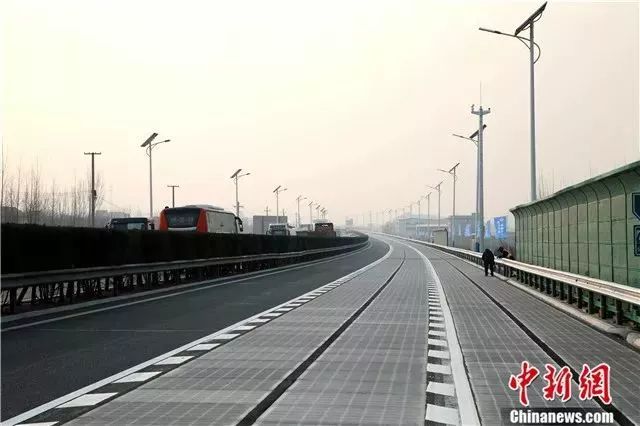 試驗道路全長1120米,預計年發(fā)電量約100萬千瓦時,每年可減少1550萬噸的二氧化碳排放。電動汽車在該公路上可以實現(xiàn)邊跑邊充電,下雪還能自動融化路面積雪。