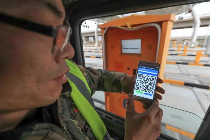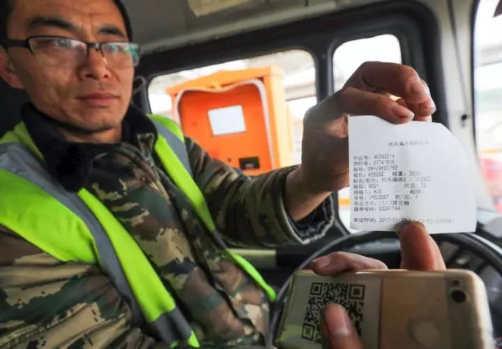 △外集卡司機(jī)在分流道口,掃描手機(jī)二維碼,然后才能進(jìn)入碼頭作業(yè)并打印出進(jìn)箱小票