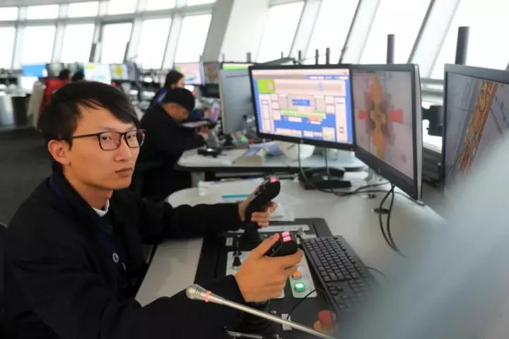 △碼頭的中控室實(shí)時(shí)監(jiān)控碼頭的運(yùn)行情況