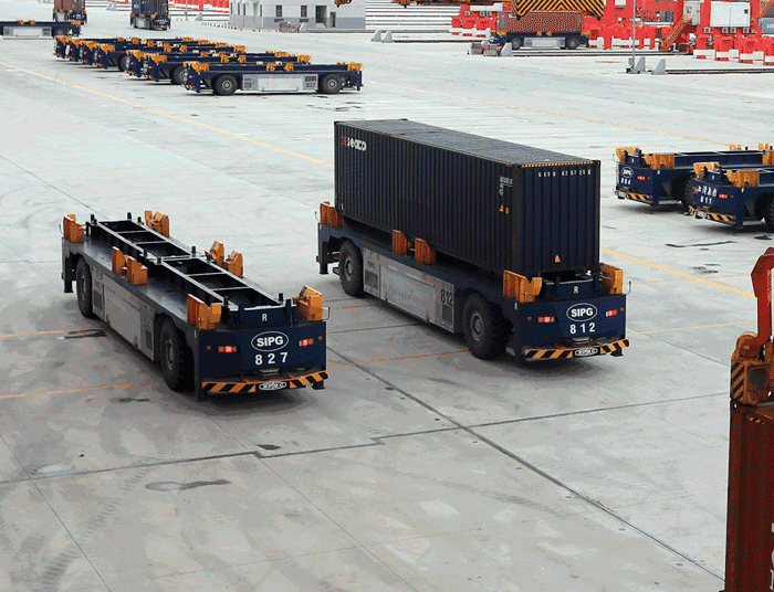 洋山四期采用由上海振華重工自主設(shè)計(jì)制造的自動(dòng)化裝卸設(shè)備,其中,最引人注目的莫過(guò)于“搬運(yùn)工”:它們既可以深入懸臂箱區(qū)作業(yè),又可以在堆場(chǎng)中來(lái)回穿梭,既可以完成全天候不間斷作業(yè),又可以有效降低碼頭能耗。它們就是自動(dòng)引導(dǎo)運(yùn)輸車(chē),也被稱(chēng)為AGV。