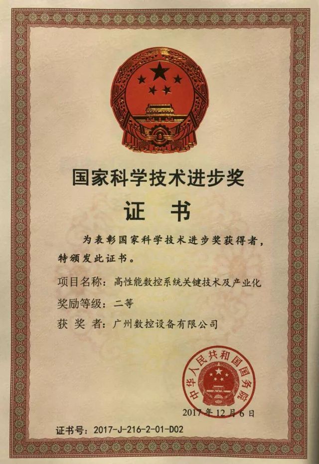 在此次獎勵大會上,廣州數(shù)控設備有限公司參與完成的《高性能數(shù)控系統(tǒng)關(guān)鍵技術(shù)及產(chǎn)業(yè)化》項目榮獲國家科學技術(shù)進步獎二等獎!展現(xiàn)了廣州數(shù)控在數(shù)控系統(tǒng)行業(yè)的雄厚實力以及對科學技術(shù)創(chuàng)新的不懈追求!