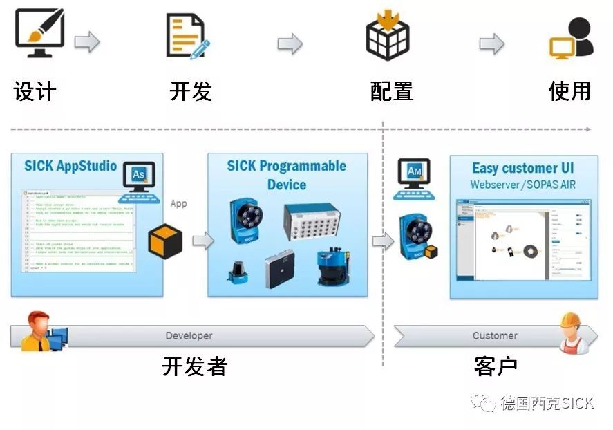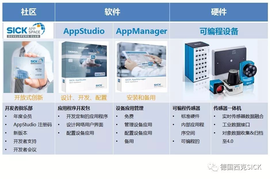 SICK AppSpace將帶領(lǐng)一大波新產(chǎn)品來襲,包含一系列硬件即SICK可編程設(shè)備;一款為這些可編程設(shè)備提供軟件平臺,用于開發(fā)應(yīng)用程序的軟件AppStudio,簡稱As;一款用于管理應(yīng)用程序的免費軟件AppManager,簡稱Am。