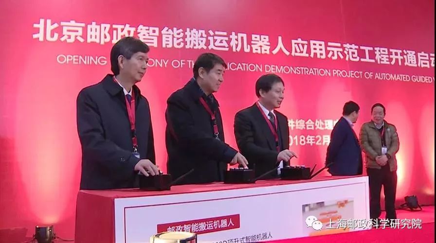 2018年2月1日,北京郵政智能搬運機器人項目在北京郵政綜合處理中心正式上線,中國郵政集團公司副總經理李丕征、北京市郵政分公司總經理王小東、上海郵政科學研究院院長李明共同開啟了這位物流界大力神的“春運”首秀。