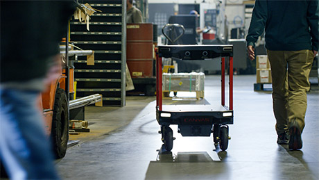 而CANVAS自主小推車,是一種簡(jiǎn)單的自行駕駛系統(tǒng),旨在提高動(dòng)態(tài)工業(yè)環(huán)境的效率。這款自主小推車可以隨時(shí)進(jìn)行重新編程,根據(jù)當(dāng)天的需要進(jìn)行各種滾動(dòng)??扇〈F(xiàn)有固定和昂貴的工廠基礎(chǔ)設(shè)施,傳送帶便是首當(dāng)其沖。
