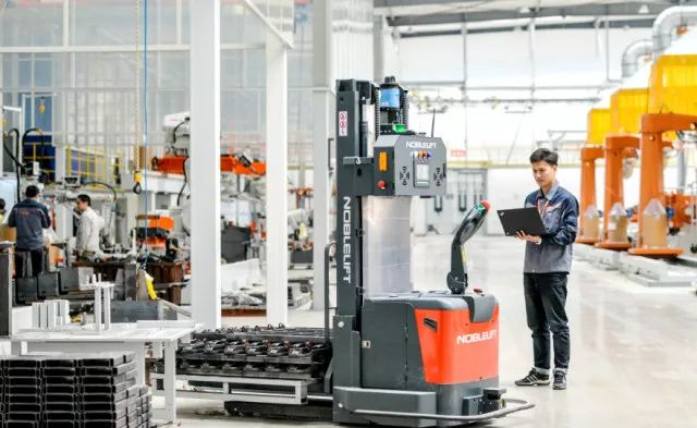 這是該公司與高校聯(lián)合研發(fā)的最新自動(dòng)導(dǎo)引運(yùn)輸車(AGV)系列中的一款,通過程序智能控制和激光導(dǎo)引,實(shí)現(xiàn)完全無人駕駛,自主完成存取貨物,可使倉庫巷道寬度節(jié)省一半,工作效率提高一倍以上。