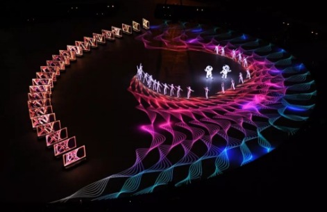 僅僅90秒的換場(chǎng)準(zhǔn)備時(shí)間,24個(gè)移動(dòng)機(jī)器人與舞蹈演員的精準(zhǔn)互動(dòng),16套復(fù)雜的機(jī)器人動(dòng)作規(guī)劃……在此之前,世界范圍內(nèi)從未出現(xiàn)過(guò)如此大規(guī)模的移動(dòng)機(jī)器人演出陣容。移動(dòng)機(jī)器人車(chē)體攜帶液晶顯示單元,在表演中需要配合舞蹈演員完成一系列曼妙而復(fù)雜的舞美動(dòng)作,不允許有一絲一毫的誤差——哪怕其中一臺(tái)機(jī)器人有一秒的延遲或動(dòng)作偏差,都將導(dǎo)致整個(gè)演出的失敗。