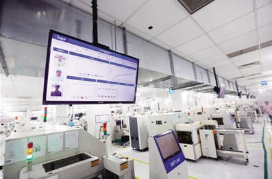 工廠看板的屏幕上實(shí)時(shí)顯示了自動(dòng)流水線的運(yùn)作情況,方便管理監(jiān)督。