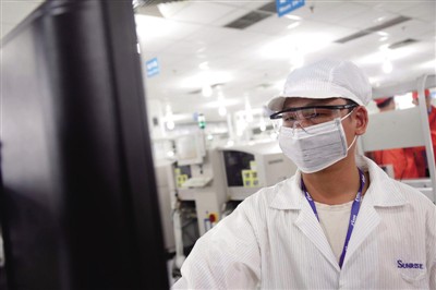 24℃恒溫,52%恒濕。在悶熱難耐的桑拿天,位于上海市青浦工業(yè)園區(qū)的這個(gè)車間顯得有條不紊,沒(méi)有嘈雜的轟鳴聲,也沒(méi)有瑣碎的交談聲。這里是晨訊科技集團(tuán)的手機(jī)和通訊模塊制造廠,也是國(guó)內(nèi)首個(gè)手機(jī)業(yè)“無(wú)人工廠”。無(wú)人化車間面積約3000平方米,占據(jù)了廠房的一整個(gè)樓層。