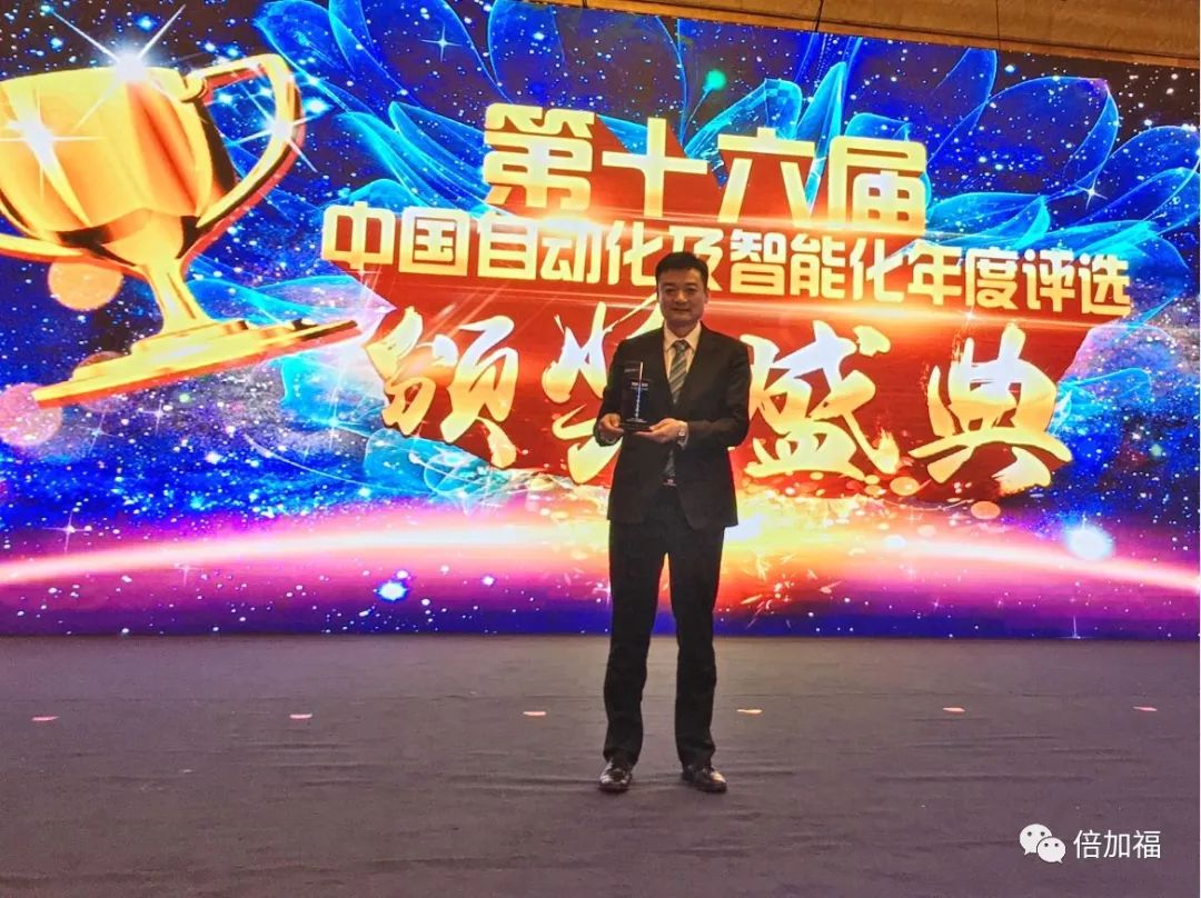 代表上海倍加福工業(yè)自動(dòng)化貿(mào)易有限公司上臺領(lǐng)獎(jiǎng)。
