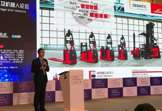 演講中,林德呈現(xiàn)了林德搬運(yùn)機(jī)器人(Linde Robotics)在物料搬運(yùn)智能物流的導(dǎo)向地位,機(jī)器人在移動(dòng)過(guò)程中可以進(jìn)行自主定位,高速行駛,在加強(qiáng)物料搬運(yùn)和倉(cāng)儲(chǔ)過(guò)程中的精準(zhǔn)性的同時(shí),得以更加安全高效地運(yùn)行在復(fù)雜多變的物流作業(yè)工況中。而德馬泰克從高度自動(dòng)化的角度引出了其作為供應(yīng)鏈解決方案供應(yīng)商,能夠滿(mǎn)足供應(yīng)鏈各個(gè)環(huán)節(jié)的需求,提供從入庫(kù)到出庫(kù)一站式的倉(cāng)儲(chǔ)解決方案,或單個(gè)環(huán)節(jié)的自動(dòng)化解決方案。