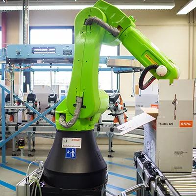 雖然STIHL工廠自動化程度很高,但在后段的產(chǎn)品檢測和裝箱環(huán)節(jié),都需要人工完成。單臺電鋸的重量達到了10公斤,每位工人每班次需要累計搬運8噸的重量,工作強度很大。為了改變這一現(xiàn)狀,不久前,STIHL在其電鋸產(chǎn)品的包裝線引入了FANUC CR-35iA協(xié)作機器人。