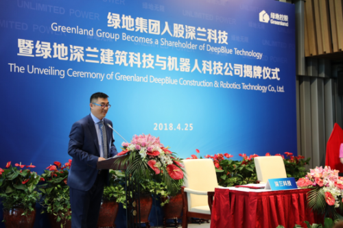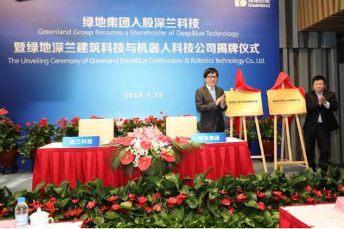 2018年4月25日,綠地集團(tuán)入股深蘭科技暨綠地建筑深蘭科技與機(jī)器人科技公司揭牌儀式在上海舉行。這也是深蘭科技繼4月份獲得國家隊(duì)中金資本A+輪億元級(jí)融資之后,再次獲得億元級(jí)投資。本次簽約儀式,還受到了上海市政府高度重視,長寧區(qū)區(qū)長顧洪輝、上海市科學(xué)技術(shù)委員會(huì)副主任干頻等政府領(lǐng)導(dǎo)嘉賓出席參加。深蘭科技創(chuàng)始人、董事長兼首席執(zhí)行官陳海波先生攜深蘭科學(xué)家團(tuán)隊(duì)成員,綠地控股集團(tuán)董事長、總裁張玉良先生等雙方企業(yè)等代表出本次簽約儀式。