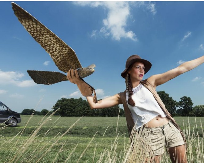 在機(jī)場(chǎng)等場(chǎng)合,鳥類有時(shí)意味著很大的隱患。ClearFlight公司為此設(shè)計(jì)了一款能夠撲打翅膀的機(jī)器鷹RoboBird。通過模仿猛禽的外觀和運(yùn)動(dòng),RoboBird能夠有效地嚇走較小的鳥兒,人類無(wú)需布置網(wǎng)狀捕捉裝置或噪音發(fā)射裝置。