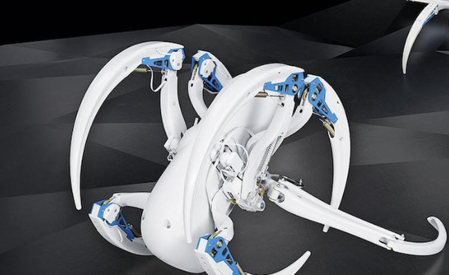 Vincross公司的HEXA六腳機(jī)器人看起來(lái)很像一只螃蟹,能夠應(yīng)對(duì)各種地形。按照設(shè)計(jì),它相當(dāng)于一個(gè)機(jī)器人平臺(tái),而非成品。設(shè)計(jì)者為它裝配了許多傳感器,包括具有夜視能力的攝像頭、兩個(gè)三軸加速度計(jì)、一個(gè)紅外發(fā)射器和一個(gè)距離測(cè)量傳感器。開發(fā)者可花費(fèi)500美購(gòu)買一只HEXA,使用Vincross提供的標(biāo)準(zhǔn)開發(fā)工具包,讓它擁有各種功能。Vincross的官網(wǎng)指出,HEXA可塑造成火星上的火山勘探器或地震后的急救員。