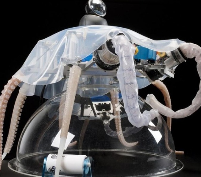 圣安娜高等研究院的教授Cecilia Laschi是軟體機(jī)器人這一新興領(lǐng)域的領(lǐng)軍者。她打造了一種機(jī)器八爪魚(yú),能夠像八爪魚(yú)一樣在水中和海床上移動(dòng)。它能夠把水吸入體腔,通過(guò)噴出水流在水中移動(dòng),還可利用柔軟的觸手在不平坦的海底攀爬。