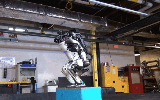 這一版最震撼的還有Atlas摔倒了可以自主爬起來的功能,這個功能相對于其他機(jī)器人來講,性能已經(jīng)十分優(yōu)秀了,而且起身的效率也十分迅速,頑強(qiáng)抵抗人類工程師的各種“欺負(fù)”。之后,2017年11月爆出了碉堡的連續(xù)彈跳后空翻技術(shù),創(chuàng)下了一個機(jī)器人領(lǐng)域里程碑的事件。