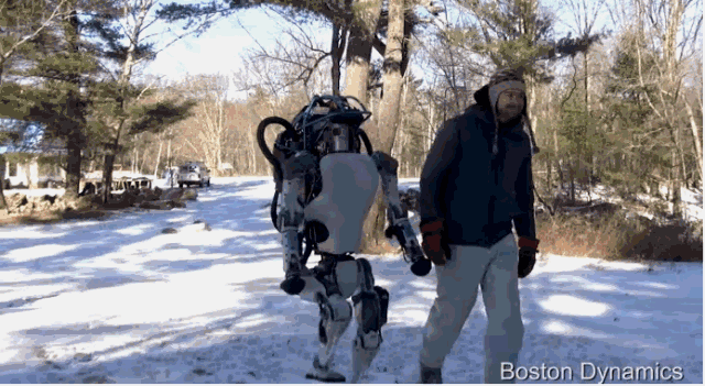 那時候Atlas需要一根長長的線進(jìn)行供電,在實(shí)驗室環(huán)境中,走過鋪滿石塊的道路,并一直保持身體平衡不摔倒。其次,Atlas能保持單腳站立,引入外部撞擊,在撞擊力不是很大的情況下,Atlas仍能保持單腳站立不摔倒。