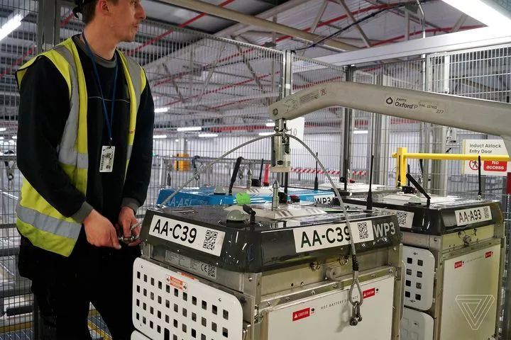 這個巨大的結構充斥在一個 Andover 郊區(qū)的倉庫中,而 Andover 則是英格蘭東南部一個安靜的小鎮(zhèn)。想要一眼就看出來這是什么是不可能的,但是當你站在這棟建筑椽子附近的維修通道上,你將看到一個巨大的「棋盤」,而這個「棋盤」上全都布滿了機器人。