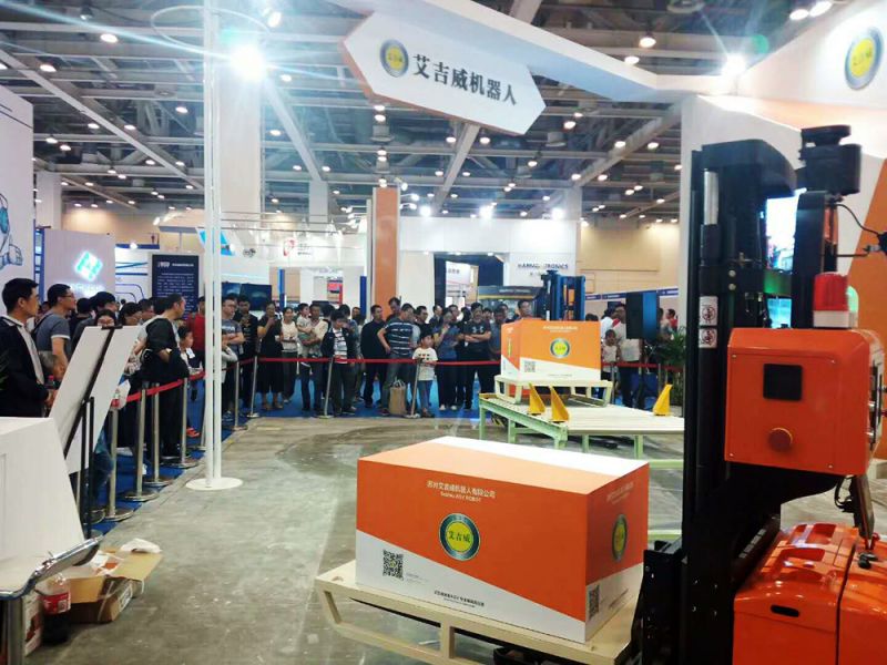 蘇州艾吉威機器人有限公司受邀參加本屆智博會,現(xiàn)場實力演繹多臺無反光板激光自主導(dǎo)航叉車AGV在AGVS系統(tǒng)的調(diào)度下完成輥筒線托盤取放任務(wù)。在艾吉威展臺前,大量觀眾興趣盎然的駐足在艾吉威無反光板激光AGV旁,觀看大屏幕播放的艾吉威無反光板激光AGV在國際化智能工廠中的應(yīng)用案例,觀眾贊聲不斷,更有人不斷向艾吉威工作人員追問細(xì)節(jié)。