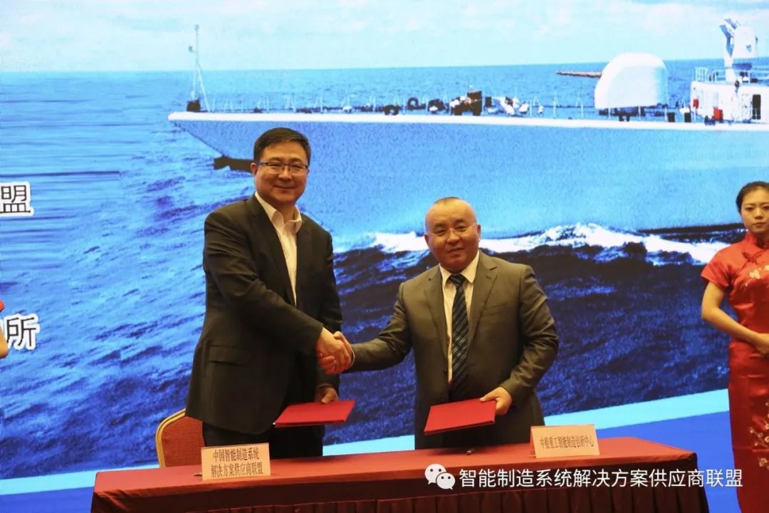 聯(lián)盟趙波秘書長(zhǎng)和創(chuàng)新中心顧浩所長(zhǎng)就中國智能制造系統(tǒng)解決方案供應(yīng)商聯(lián)盟船舶行業(yè)分盟籌建進(jìn)行合作簽約。