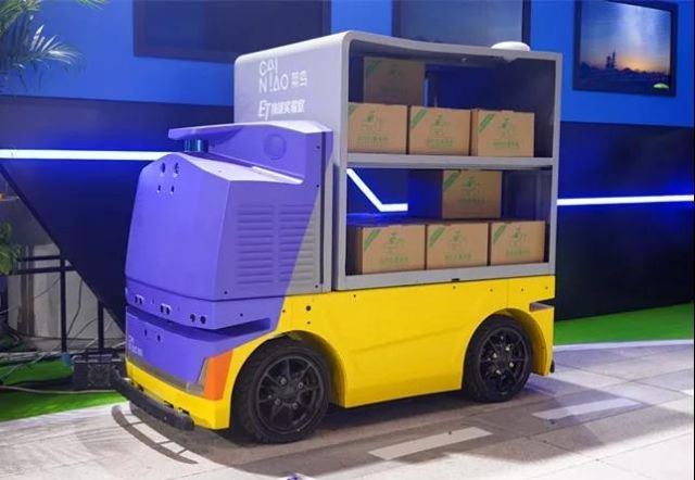 醒目的黃藍(lán)配色,長得像個火車頭的是“G plus”,他負(fù)責(zé)解決最后一公里的配送問題,菜鳥G plus專為解決快遞行業(yè)末端最后一公里配送而生,是全球先進(jìn)機(jī)器人之一,目前已經(jīng)攻克紅綠燈自動識別、行人車輛軌跡預(yù)測和避讓、可通行區(qū)域檢測等關(guān)鍵技術(shù),已在杭州公開道路上實現(xiàn)路測。