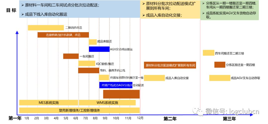 另外,智能物流的實(shí)施需要有分階段的實(shí)施計(jì)劃,一方面是配合智能工廠的建設(shè),包括新建工廠的搬遷或者老工廠的改造,以及試點(diǎn)的產(chǎn)線可以先行實(shí)施,其他產(chǎn)線逐步實(shí)施等;另一方面在智能物流系統(tǒng)建設(shè)自身由于投入金額高,實(shí)施難度較大,也是需要進(jìn)行整體規(guī)劃,分步實(shí)施。