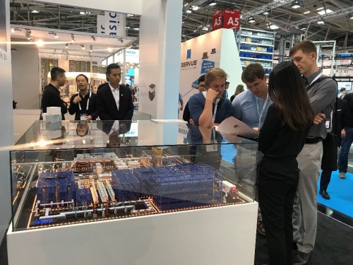 圖片說明:HRG 鋰電池自動(dòng)化生產(chǎn)線沙盤在AUTOMATICA2018現(xiàn)場