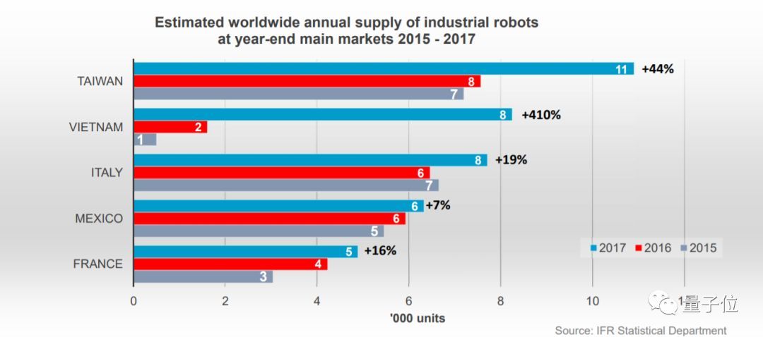 這是國際機器人聯(lián)合會 (IFR) 的新報告里,給出的安裝量估計。
