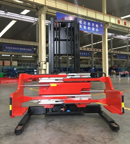 杭叉集團從客戶需求出發(fā),根據(jù)托盤規(guī)格,工位需求等,采用定制型抱夾屬具,配合多重防護檢測,確保AGV在人機混雜的復(fù)雜環(huán)境中能夠安全平穩(wěn)運行。