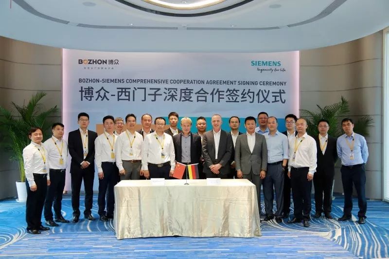 2018年7月2日,博眾精工科技股份有限公司 (BOZHON)與西門子(中國)有限公司(SIEMENS)在博眾總部舉行深度合作會議并簽署相關(guān)協(xié)議。博眾董事長呂紹林及集團高層,西門子數(shù)字化工廠集團工廠自動化部全球銷售總裁Guido Feind、西門子(中國)有限公司數(shù)字化工廠集團工廠自動化部總經(jīng)理Joerg Westerholt、西門子(中國)有限公司華東區(qū)銷售總經(jīng)理劉志生等雙方高層共同出席了簽約儀式。