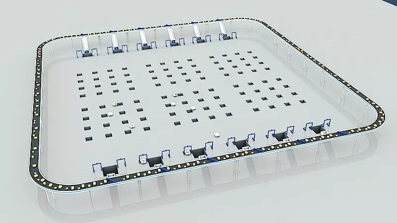 小件機(jī)器人分揀方案已大規(guī)模應(yīng)用于中國(guó)郵政包裹處理中心的分揀場(chǎng)景。1300㎡的S10機(jī)器人區(qū)共300臺(tái)機(jī)器人協(xié)同作業(yè),另外配合50臺(tái)S500機(jī)器人(后文詳述),僅需5個(gè)工人進(jìn)行作業(yè)。機(jī)器人運(yùn)行速度為3m/s,分揀峰值超過(guò)10000件/時(shí)。機(jī)器人單體可自動(dòng)充電,充電5分鐘可連續(xù)運(yùn)行4小時(shí),實(shí)行“淺充淺放”原則。
