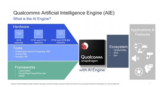 30多年來,高通一直引領移動的創(chuàng)新,無論是通信技術還是人工智能,都有著強大優(yōu)勢。高通對人工智能研究已有十余年,基于智能終端的人工智能平臺,已經演進了三代。并且推出了還推出了人工智能引擎AIE。人工智能引擎硬件上是通過Adreno GPU、Kryo CPU和 Hexagon DSP三種單元,可以智能靈活地執(zhí)行各種AI運算,每個內核架構各不相同,在處理不同AI工作負載時有各自的角色和獨特價值。人工智能引擎的軟件方面,提供了驍龍神經處理SDK、Android NN API(Android O/P都支持)、Hexagon NN,而且同時支持Caffe、Caffe 2、TensorFlow、TensorFlow Lite、ONNX等各種框架。